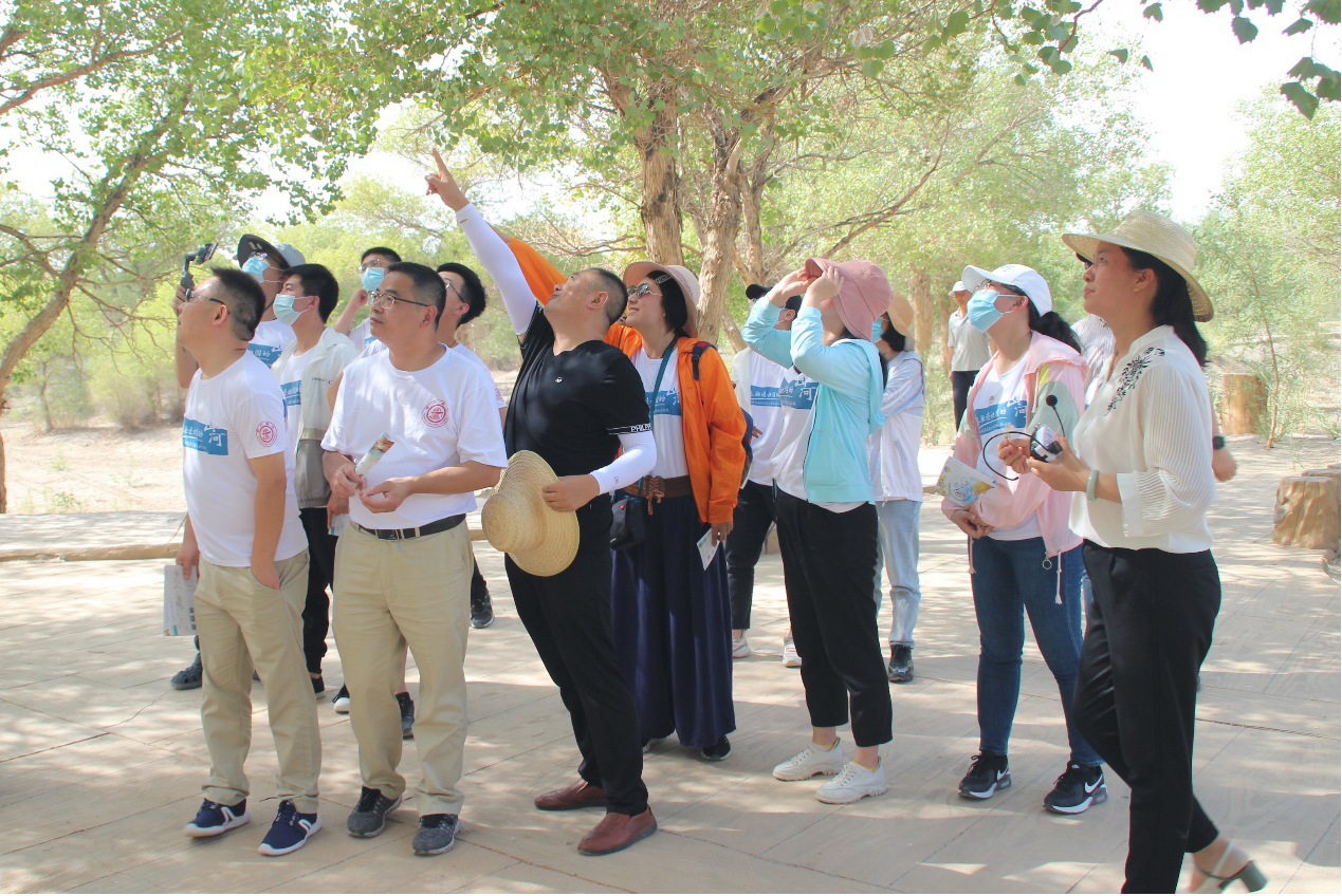 为了学习胡杨精神,实践团成员来到了金塔沙漠胡杨林景区。通过参观上万亩的胡杨林,看到那些伤痕累累、饱经风霜而又坚定伫立的胡杨,实践团成员深深体会到了“生而千年不死,死而千年不倒,倒而千年不朽”的胡杨所承载着的恪尽职守、坚韧不拔的胡杨精神。同时,为认真贯彻落实创新、协调、绿色、开放、共享“五大发展理念”和习近平总书记“绿水青山就是金山银山”的重要思想以及视察甘肃时做出的“八个着力”重要指示精神,实践团队在出发前发出了“共植胡杨 共享绿色”捐赠倡议活动。发起的捐款认领胡杨林活动共筹得款项3800元,切切实实为改善金塔县当地环境、增加植被覆盖面积、有效防范风沙灾害直接贡献了一份力量。
