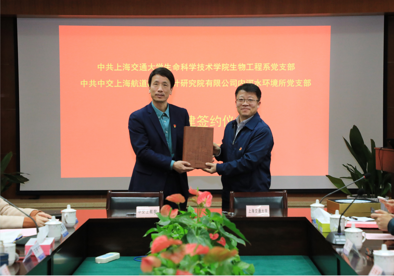 首先,上航院内河水环境所党支部书记黄荳荳介绍了该党支部的概况和党建工作情况,生物工程系教工党支部书记唐鸿志介绍了支部的党建工作情况,希望通过交流增进双方的相互了解,碰撞出思想的火花,为科技成果的转化打通最后一公里。然后,在williamhill官网嵇绍岭书记和上航院张群书记的见证下,双方举行了两个党支部党建联建的签约仪式。