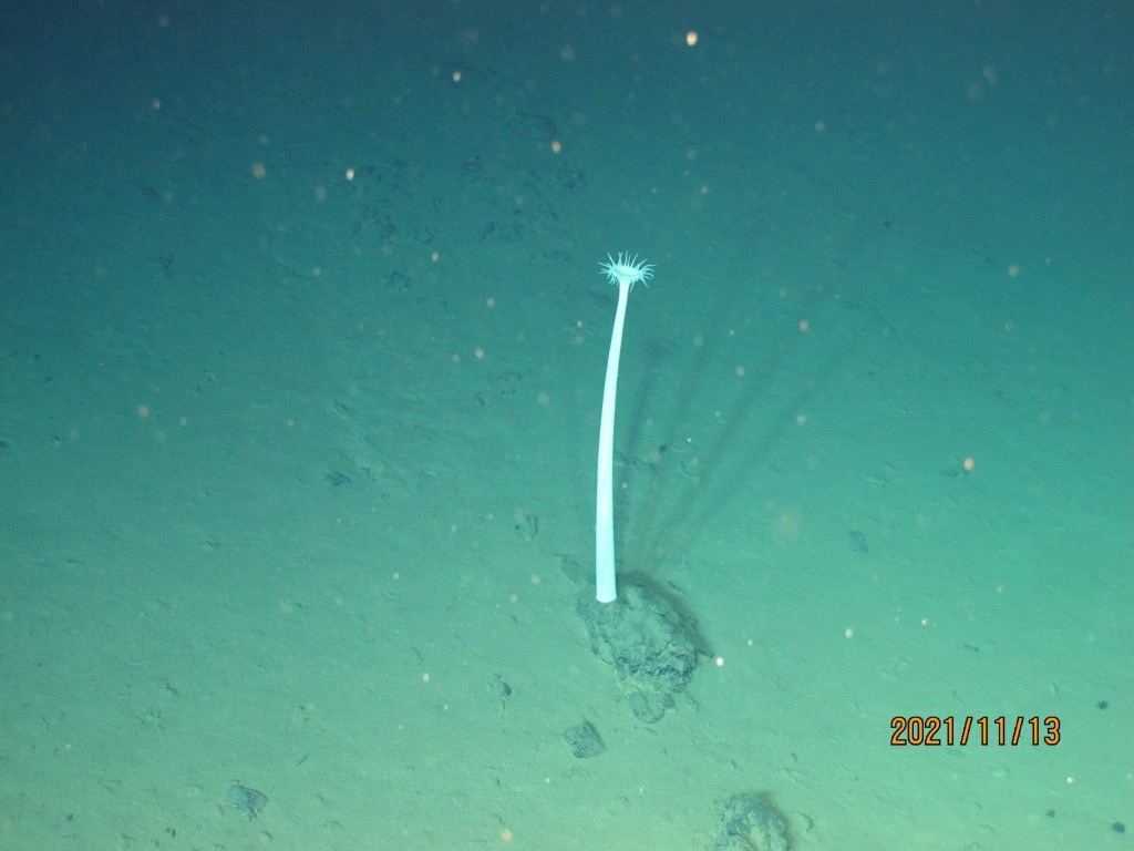 “奋斗者号”一点点往下探,赵维殳很快被迷住了。黑暗中,荧光生物常“chua”一下,流星般闪过窗口,黄的、绿的、蓝的、红的。坐底的那一刻,潜水器头部的探照灯打开,海水呈现出一种此生未见的幽蓝色,循着光映射的地方,她的眼睛好像不断在快速变焦。刚开始只有蓝;再聚焦,游动的透明小水母、小虾开始被瞳孔捕捉到;往下看,荒漠一般的海床,其实趴着透明的海参、海星、海葵……原以为是高压下“生命禁区”的深渊,呈现出异常繁荣盛大的“生命狂欢”。当时当刻,便成永恒。